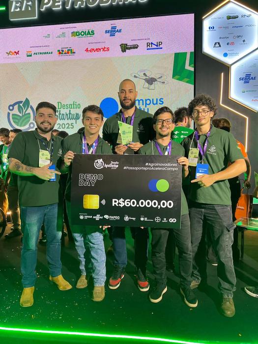 A equipe Sololink, composta por cinco estudantes da Universidade Federal de Jataí (UFJ), consagrou-se como uma das vencedoras do Desafio AgroStartup 2025, cuja etapa final ocorreu na Campus Party Goiânia. O grupo, formado por José Nelson Honorato Rodrigues, Caio Henrique Rodrigues Barreto, Luiz Guilherme dos Santos Martinez, Arthur Nunes Mesquita e Pedro Henrique Muniz, foi premiado com R$ 60 mil.
