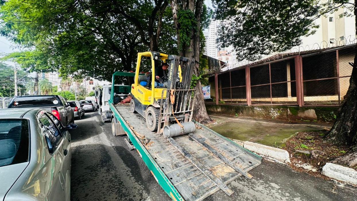 A Prefeitura de Goiânia, por meio da Secretaria Municipal de Engenharia de Trânsito (SET), reteve quatro máquinas empilhadeiras que transitavam irregularmente na Rua 115, no cruzamento com a Avenida 90, na região Sul da capital. A operação foi realizada após denúncia anônima indicando que os equipamentos circulavam entre veículos comuns, gerando risco de acidentes.