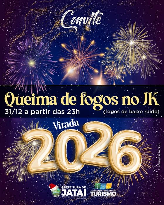 A Prefeitura de Jataí, por meio da Secretaria Municipal de Turismo, convida toda a população para celebrar a chegada de 2026 com um grande espetáculo de luzes. A tradicional queima de fogos de Réveillon será realizada à meia-noite, no Mirante do Cristo Redentor.