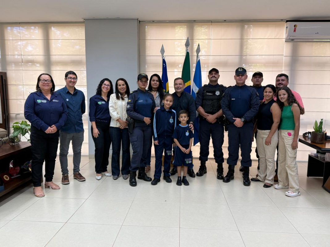 O prefeito Geneilton Assis recebeu em seu gabinete, nesta quarta-feira, 7 de janeiro de 2026, a secretária municipal de Educação, Jeane Idalina Bonifácio, e a secretária de Segurança Pública e Defesa Social, Tenente-Coronel Selma Rodrigues, para a apresentação do protótipo do uniforme da EGCM – Escola da Guarda Civil Municipal Maria Theodora de Souza. O encontro contou ainda com o Comandante da Guarda Civil Municipal, Superintendente Melo Junior, o diretor da EGCM, Yussef Willian, o comandante da escola, GCM Bandeira, além de alunos e pais. A instituição, que é a primeira do gênero no Brasil, inicia suas atividades letivas no dia 20 de janeiro de 2026, atendendo mais de 400 alunos no Setor Cidade Jardim II.