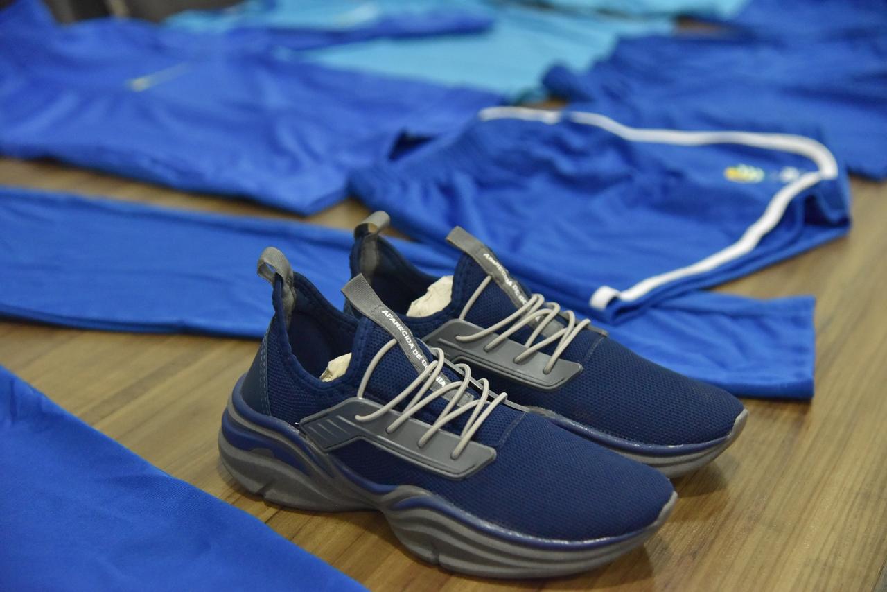 Serão entregues 45.238 kits. Cada um deles contém: mochila e estojo; agasalho; um par de tênis; meias (para os alunos do ensino fundamental); short-saia e regata (para as alunas) e bermuda e regata (para os alunos). Além disso, cada estudante receberá dois conjuntos de calça de malha e camiseta de gola redonda, totalizando 90.476 calças e camisetas.