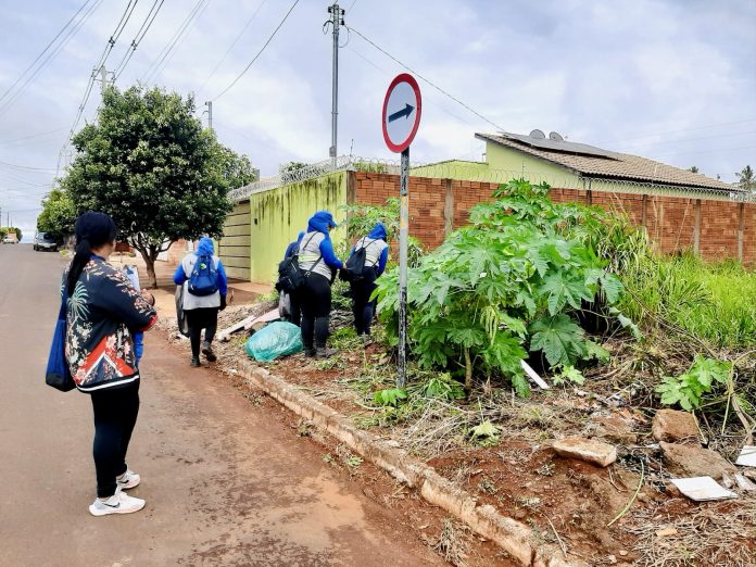 Durante a ação, as equipes realizaram visitas domiciliares, distribuíram sacos plásticos de 100 litros à população, recolheram materiais descartáveis, promoveram orientações educativas e executaram a limpeza de terrenos baldios e imóveis desabitados.