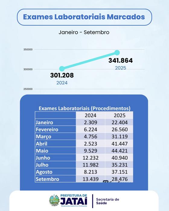 Entre janeiro e setembro de 2024, foram realizados 301.208 exames laboratoriais regulados pelo SISREG. No mesmo período de 2025, esse número saltou para 341.864 exames — um aumento de mais de 40 mil procedimentos em apenas um ano.