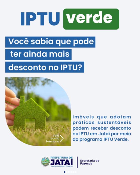 Fonte: https://www.jatai.go.gov.br/iptu-verde-oferece-desconto-para-imoveis-sustentaveis-em-jatai/