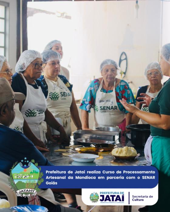 A Prefeitura de Jataí, por meio da Secretaria Municipal de Cultura, em parceria com o SENAR Goiás e o Sindicato Rural de Jataí, realizou, entre os dias 17 e 20 de março, o Curso de Processamento Artesanal da Mandioca. A iniciativa teve como objetivo capacitar a comunidade para o aproveitamento e a valorização de um dos alimentos mais tradicionais da cultura brasileira.