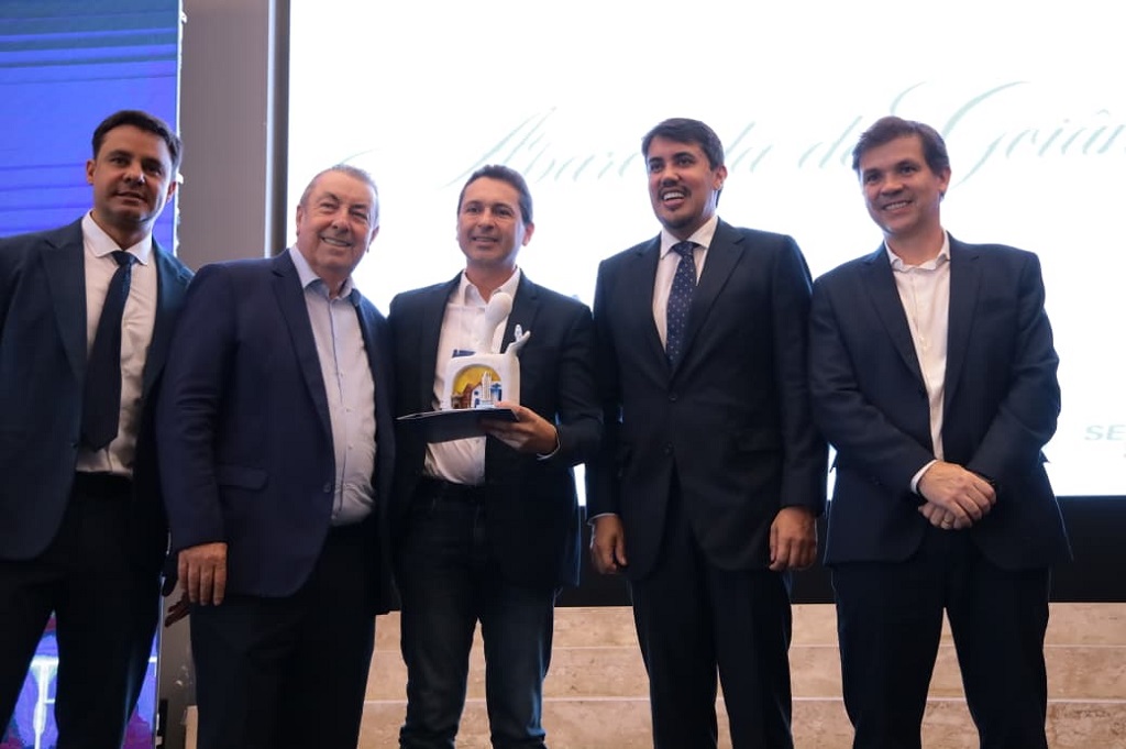 Recebendo os cumprimentos do Sebrae e da Federação Goiana de Municípios, Vilela dividiu os créditos com seus auxiliares na gestão: “trabalho sério de toda a nossa equipe” – Foto: Rodrigo Estrela