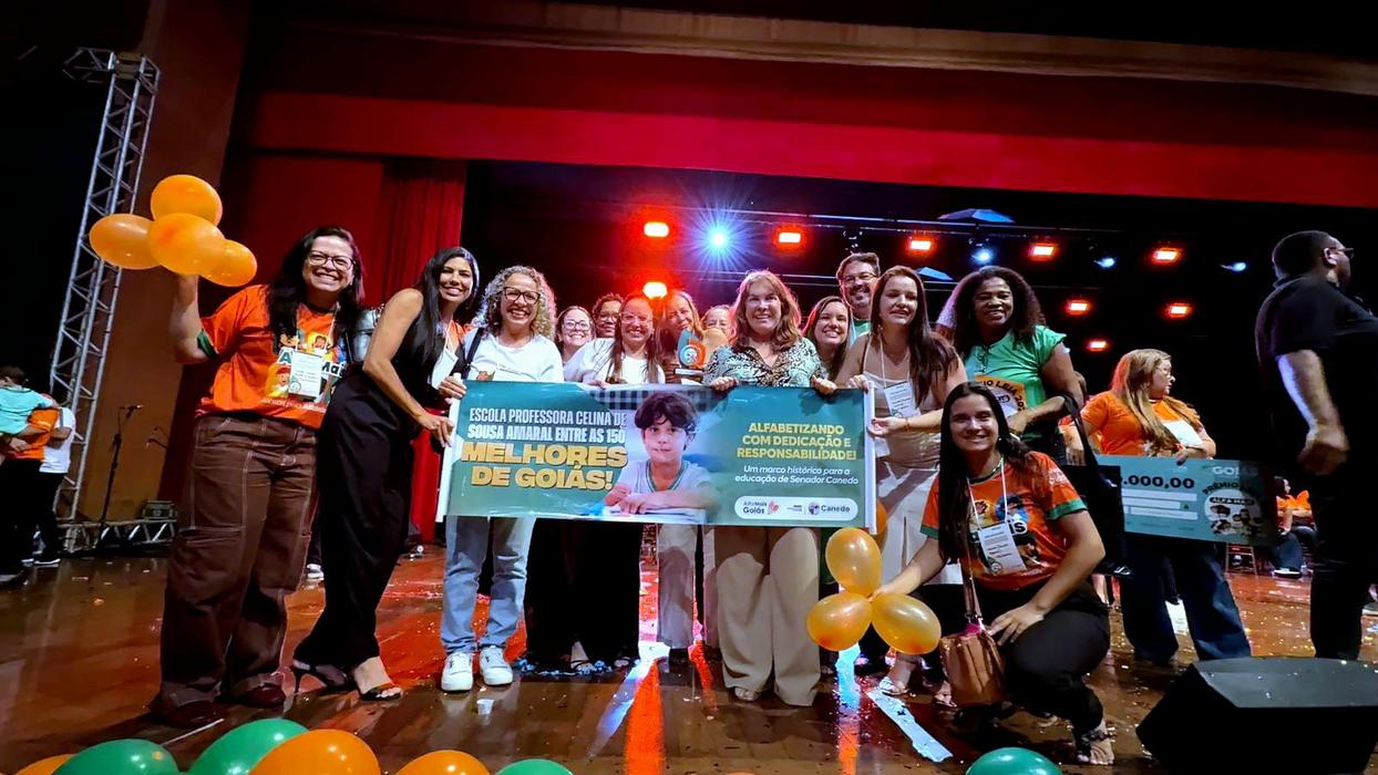 Senador Canedo celebra a presença da Escola Prof.ª Celina de Sousa Amaral entre as 150 melhores do estado, resultado que representa um marco histórico para o município e evidencia o avanço na educação básica, com foco na alfabetização na idade certa.