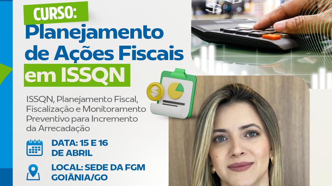A Federação Goiana de Municípios (FGM) realiza, nos dias 15 e 16 de abril, na sede da entidade em Goiânia (GO), o curso “Planejamento de Ações Fiscais em ISSQN”, com início no dia 15, das 9h,e no dia 16, das 8h30, uma ca…