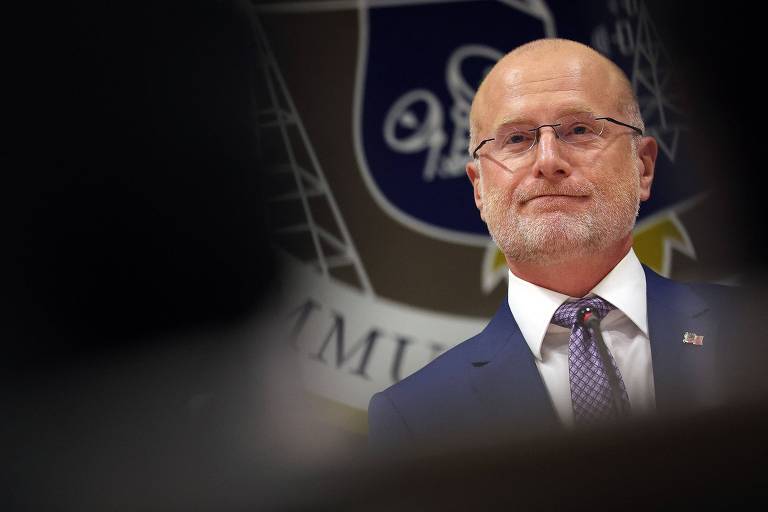 O presidente da FCC (Comissão Federal de Comunicações dos EUA), Brendan Carr, durante conferência em Washington – KEVIN DIETSCH/Getty Images via AFP