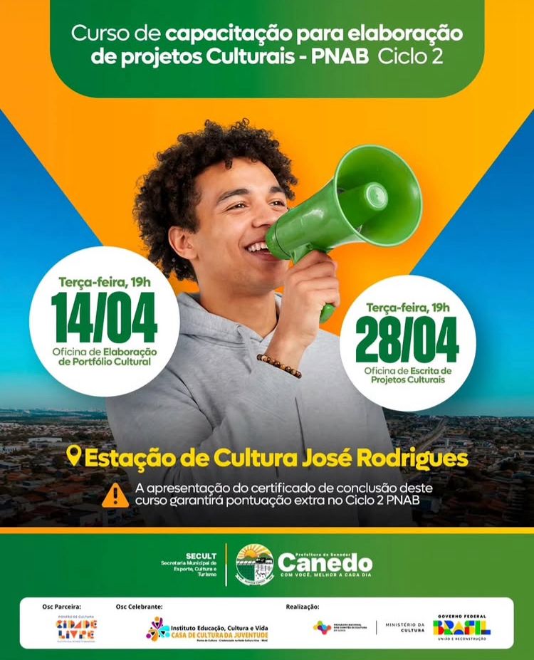 O Programa Nacional dos Comitês de Cultura (PNCC) realiza, no município de Senador Canedo, duas oficinas formativas gratuitas voltadas a artistas, produtores culturais e agentes da cultura interessados em fortalecer suas práticas e ampliar suas possibilidades de atuação no campo cultural.