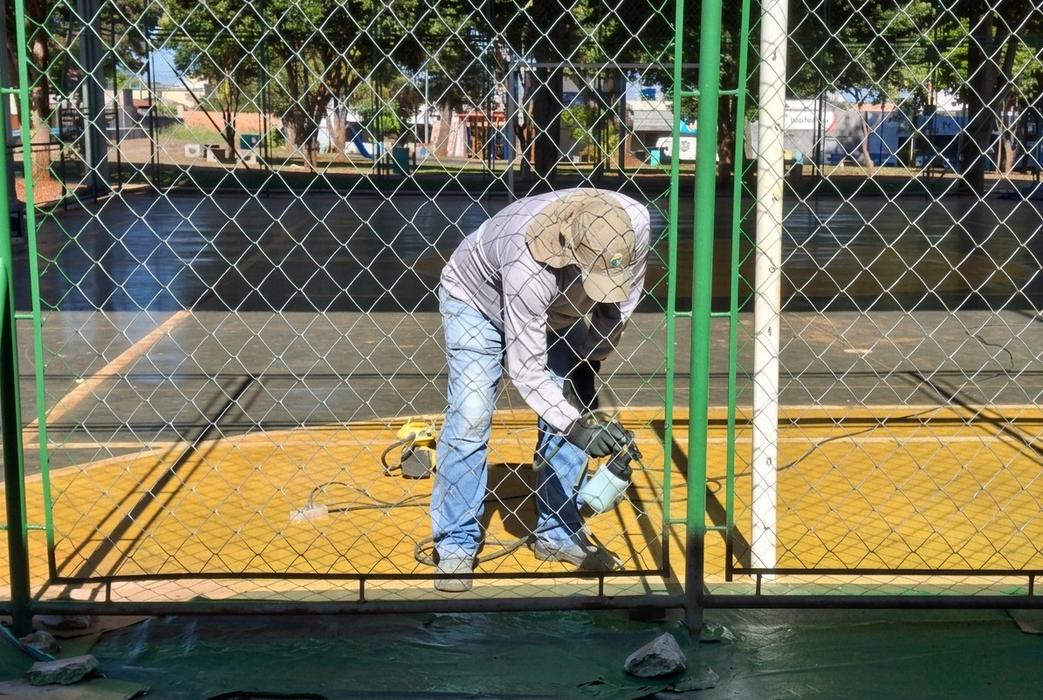 O espaço esportivo do Jardim das Oliveiras teve o alambrado totalmente substituído e já começou a receber a demarcação da quadra. A melhoria fortalece a estrutura do local e contribui para um uso mais seguro e organizado pela população.