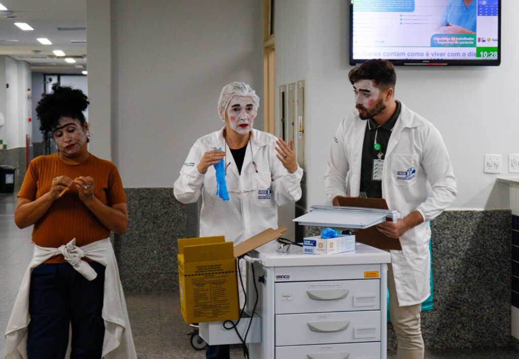A peça teatral, encenada por colaboradores de diferentes áreas, como enfermagem, call center, administração e voluntariado, retratou, com humor e situações do cotidiano, os cuidados necessários para a manutenção da biossegurança no ambiente hospitalar. Entre os temas abordados estiveram o descarte adequado de materiais perfurocortantes, o uso correto de Equipamentos de Proteção Individual (EPIs) e a restrição ao uso de adornos durante o trabalho.
