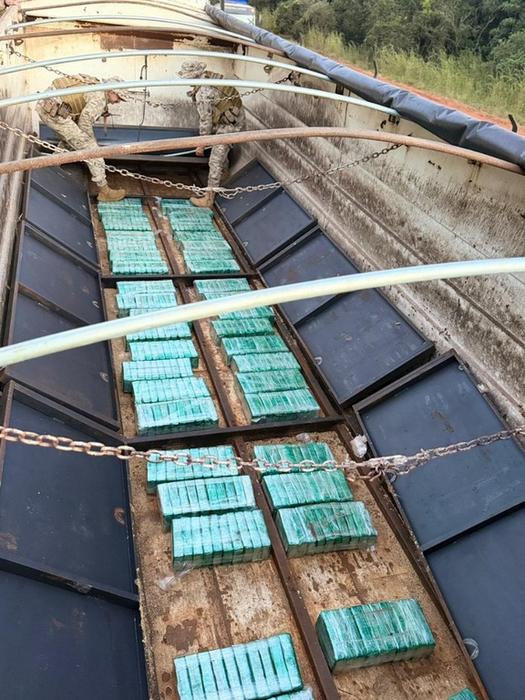 Após o compartilhamento de informações, as equipes intensificaram a fiscalização na região Sudoeste de Goiás e conseguiram abordar o veículo suspeito em Montividiu (GO). Durante a busca veicular especializada, os policiais encontraram um fundo falso que escondia o entorpecente. O condutor informou que havia carregado a droga na cidade goiana de Caiapônia e que teria como destino final o município de Pará de Minas, em Minas Gerais.