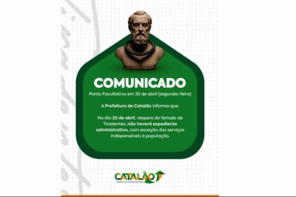 PONTO FACULTATIVO Em virtude do feriado de Tiradentes, na segunda-feira (20/4l, será ponto facultativo em todas as repartições públicas A Prefeitura de Catalão informa que, em virtude do feriado de Ti...