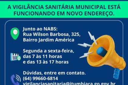– Prefeitura Municipal de Itumbiara 19 de dezembro de 2025 Última atualização: 19 de dezembro de 2025 Informamos que a Vigilância Sanitária Municipal está atendendo em novo endereço: 📍 Rua Wilso...
