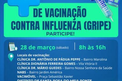 25 de março de 2026 Última atualização: 25 de março de 2026 1/1 1/1 💉 Dia D de Vacinação contra a Gripe em Itumbiara! Neste sábado (28/03), a Prefeitura de Itumbiara realiza mais uma importante ação d...