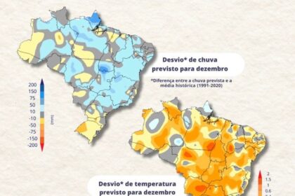 A previsão climática do Instituto Nacional de Meteorologia (Inmet) indica variabilidade em relação à chuva no Brasil durante o mês de dezembro de 2025. Em grande parte da Região Sul, as estimativas in...