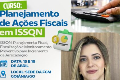 A Federação Goiana de Municípios (FGM) realiza, nos dias 15 e 16 de abril, na sede da entidade em Goiânia (GO), o curso “Planejamento de Ações Fiscais em ISSQN”, com início no dia 15, das 9h,e no dia ...
