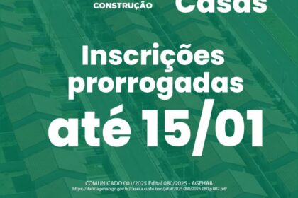 A Prefeitura de Jataí por meio da Superintendência de Habitação comunica que a Agência Goiana de Habitação (AGEHAB) publicou o Comunicado nº 001/2025, referente ao Edital 080/2025, informando a prorro...